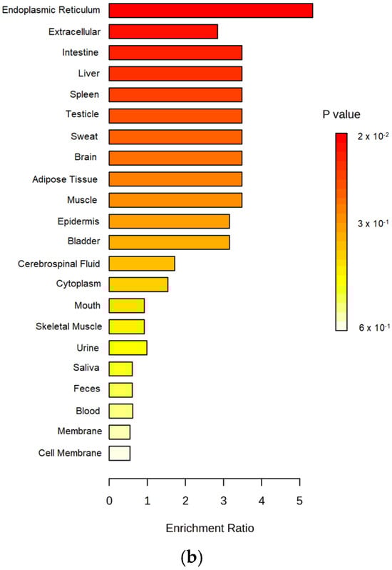 Metabolomic set enrichment analysis identifying key pathways and (a) cellular locations in preeclampsia (b).