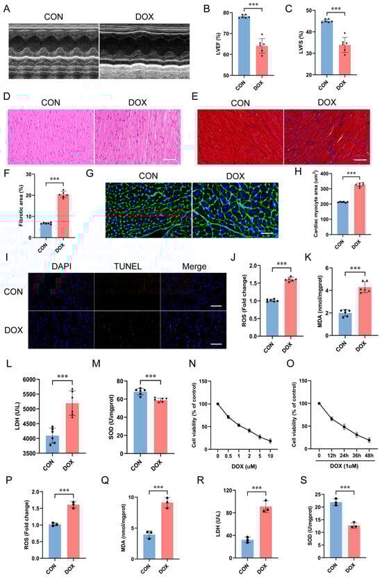 2.1. Characterization of DOX-Induced Cardiotoxicity In Vivo and In Vitro