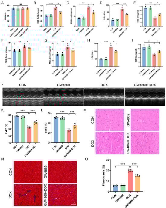 2.2. GW4869 Alleviated Oxidative Stress and Cardiac Dysfunction by Inhibiting DOX-Stimulated Exosome Release