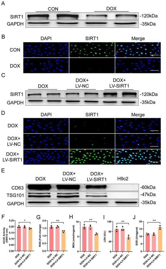 Zhang, S.; Yang, Y.; Lv, X.; Zhou, X.; Zhao, W.; Meng, L.; Xu, H.; Zhu, S.; Wang, Y. Doxorubicin-Induced Cardiotoxicity Through SIRT1 Loss Potentiates Overproduction of Exosomes in Cardiomyocytes. Int. J. Mol. Sci. 2024, 25, 12376. https://doi.org/10.3390/ijms252212376