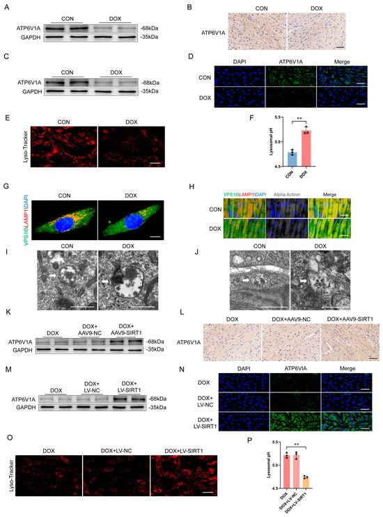 2.4. Downregulation of SIRT1-ATP6V1A Mediated DOX-Induced Loss of Lysosomal Acidification
