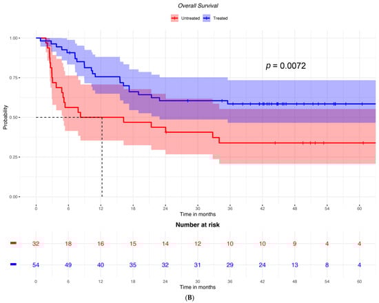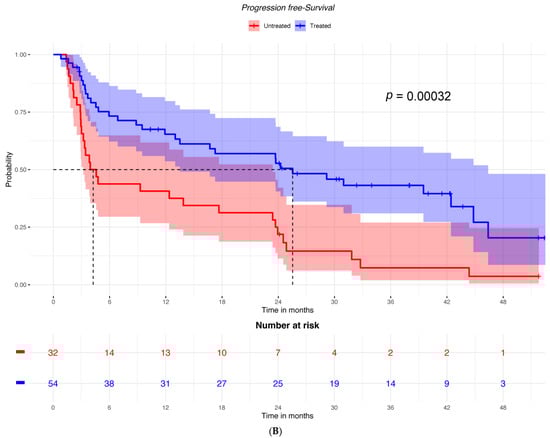 A multivariable analysis with a logistic regression model showed that patients treated with cetirizine had a better PFS than untreated ones (Figure 4A). Additionally, these results were confirmed by dichotomizing data, finding an improved DCR with cetirizine treatment in patients with high ICOSLG expression (Supplementary Figure S3A).