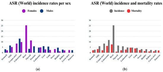 (a) ASR incidence rates per sex; (b) ASR incidence and mortality rates.