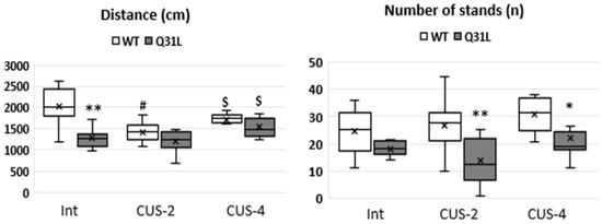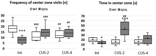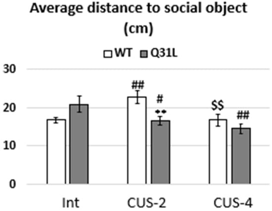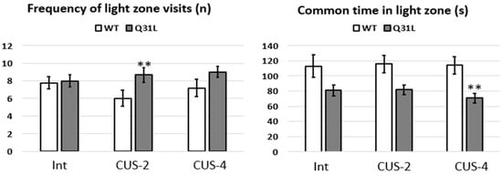 2.1. Two Weeks of CUS Decreased WT Mice Locomotor Activity but Had No Effect on Q31L Mice