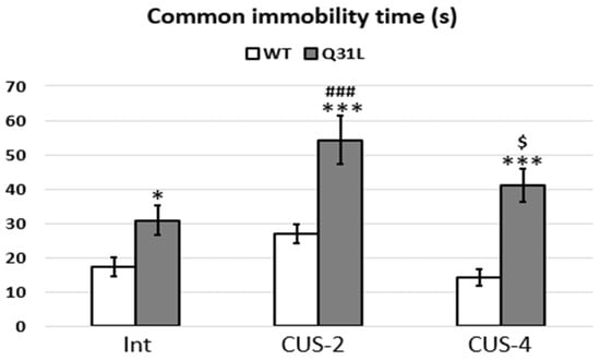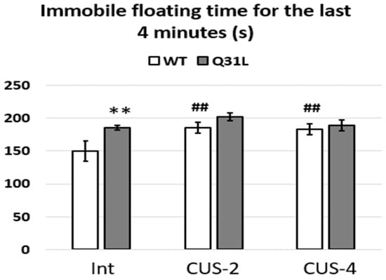 2.4. CUS Induced Depressive-Like Behavior in WT Mice but Did Not Affect Depressive-Like Behavior in Q31L Mice