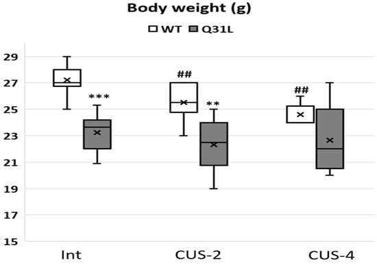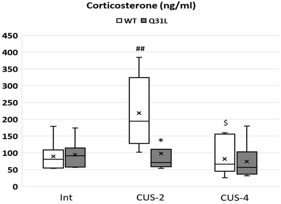 2.5. CUS Did Not Increase the Plasma Corticosterone Level and Not Induce Body Weight Loss in Q31L Mice