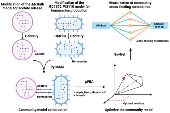 - Predl, M.; Mießkes, M.; Rattei, T.; Zanghellini, J. PyCoMo: A Python Package for Community Metabolic Model Creation and Analysis. Bioinformatics 2024, 40, btae153. [Google Scholar] [CrossRef] [PubMed]