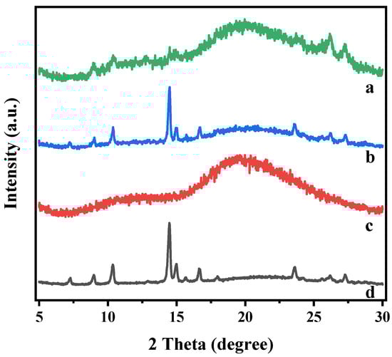 X-ray diffraction (XRD) data were collected using an Ultima IV X-ray powder diffractometer (Rigaku, Tokyo, Japan) with Cu-Kα radiation (λ = 1.5418 Å), under the following conditions: 40 kV, 40 mA, scanning range 5–30°, and scan rate of 0.02° min−1.