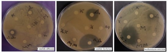 Fungal infections are also a modern problem that is far from being resolved soon. The development of resistance of pathogenic fungi to the antifungal drugs used is of concern. Yeast of the genus Candida is the causative agent of candidiasis, a widespread disease. In the hospital environment, Candida albicans and Candida tropicalis species are most often noted []. C. albicans has become a serious health problem, especially in immunocompromised patients, due to the antifungal drug resistance that many strains have developed. These yeasts cause 78% of fungal nosocomial infections and more than 10% of all nosocomial infections []. The other non-albicans Candida species are also of growing concern in hospital epidemiology []. For example, a wide range of antifungal drugs best knows Candida auris, first described in 2009, for its strong resistance. C. auris isolates are resistant to fluconazole, amphotericin B and echinocandins. About 90% of C. auris strains have acquired resistance to at least one antifungal drug []. This is manifested in the absence of in vitro growth inhibition when the minimum inhibitory concentrations of the selected drug cease to effectively suppress colony growth. This may also be evidenced by the clinical deterioration of the patient’s condition and the constant isolation of the pathogen from his clinical samples despite the administration of an antifungal drug []. The two main factors in the development of clinical resistance are the ability of Candida spp. to form a biofilm and reduce the concentration of the drug in the infected area, which allows some parts of the yeast to survive and acquire resistance []. In addition, the widespread use of antifungal drugs in the clinic and in agricultural conditions can serve as a possible selective force in creating a reservoir of Candida spp. strains resistant to antifungal drugs []. Brewer’s yeast (Saccharomyces cerevisiae) is widely used in the food industry and is considered harmless, which allows it to be used as a convenient model object in research, which can partially replace pathogenic species of the genus Candida. Compared to other groups of microorganisms, S. cerevisiae are not considered aggressive pathogens, but they are nevertheless capable of causing human diseases under certain circumstances. Several studies have analyzed the potential virulence of this type of yeast, and it has been suggested that some strains have the potential to cause disease []. For example, at the Center for Kidney Diseases and Transplantation at Baghdad Medical Center, 19 patients with S. cerevisiae-caused fungemia were found [].
