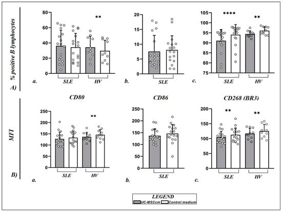 APA StyleYordanova, A., Ivanova, M., Tumangelova-Yuzeir, K., Angelov, A., Kyurkchiev, S., Belemezova, K., Kurteva, E., Kyurkchiev, D., & Ivanova-Todorova, E. (2024). Umbilical Cord Mesenchymal Stem Cell Secretome: A Potential Regulator of B Cells in Systemic Lupus Erythematosus. International Journal of Molecular Sciences, 25(23), 12515. https://doi.org/10.3390/ijms252312515