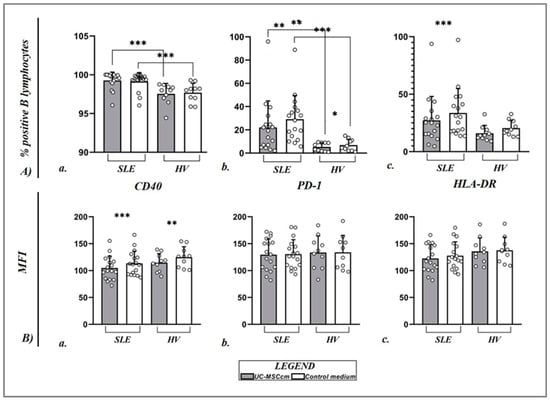 2.3.2. Influence of MSC Secretome on CD40, CD279 (PD-1), and HLA-DR B-Cell Expression