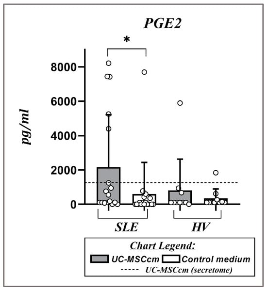 2.5. Influence of MSC Secretome on PGE2 Levels After Culturing PBMCs in UC-MSCcm