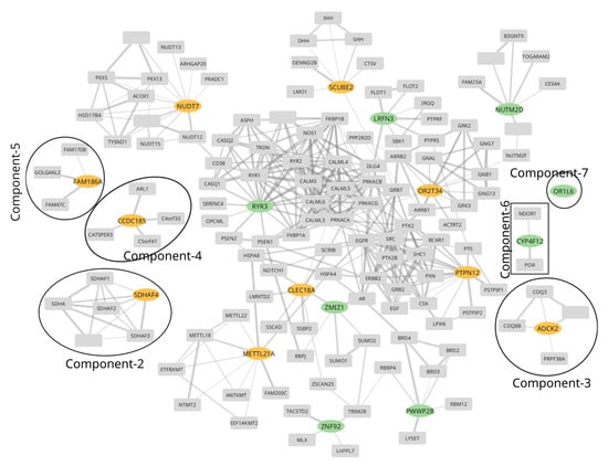 - Shannon, P.; Markiel, A.; Ozier, O.; Baliga, N.S.; Wang, J.T.; Ramage, D.; Amin, N.; Schwikowski, B.; Ideker, T. Cytoscape: A software environment for integrated models of biomolecular interaction networks. Genome Res. 2003, 13, 2498–2504. [Google Scholar] [CrossRef]