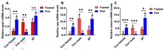 APA StyleLi, X., Zou, Q., Liu, X., Lou, Q., Jin, X., He, J., Yin, Z., Zhai, G., Duan, M., & Chen, G. (2024). Characterization of Feeding Behaviors, Appetite Regulation and Growth Performance of All-Female (cyp17a1+/−;XX Genotype) Common Carp (Cyprinus carpio). International Journal of Molecular Sciences, 25(23), 12517. https://doi.org/10.3390/ijms252312517