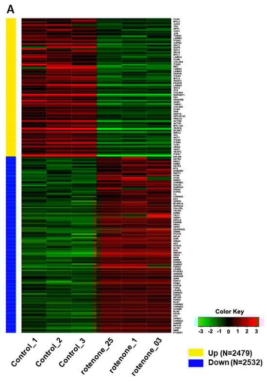 2.3. Rotenone Suppresses Neurodevelopment and the Expression of Synaptic Transmission-Related Genes