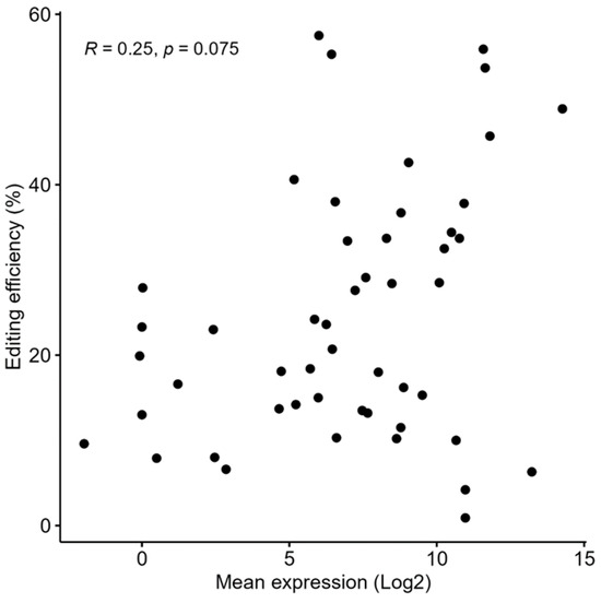 2.5. Relation Between Gene Expression Level and Editing Efficiency