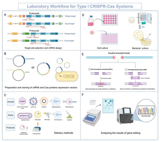- Hidalgo-Cantabrana, C.; Barrangou, R. Characterization and applications of Type I CRISPR-Cas systems. Biochem. Soc. Trans. 2020, 48, 15–23. [Google Scholar] [CrossRef]