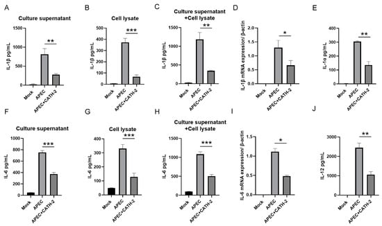 2.1. CATH-2 Inhibits APEC-Induced Transcription and Production of Inflammatory Cytokines in Macrophages