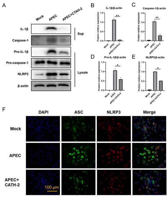 2.2. CATH-2 Inhibits APEC-Induced NLRP3 Inflammasome Activation in Macrophages