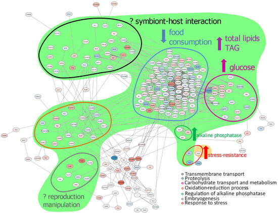 The aim of the work [24] was to study several aspects of the interaction between the insect host and the symbiotic bacteria, such as the effect of the presence of cytoplasmically transmitted strains of the bacterium Wolbachia on the patterns of gene expression of the insect host Drosophila melanogaster, and to examine the possible correlation of these effects with the changes in host fitness and metabolism caused by Wolbachia, as has been described previously using other methods (Figure 2).
