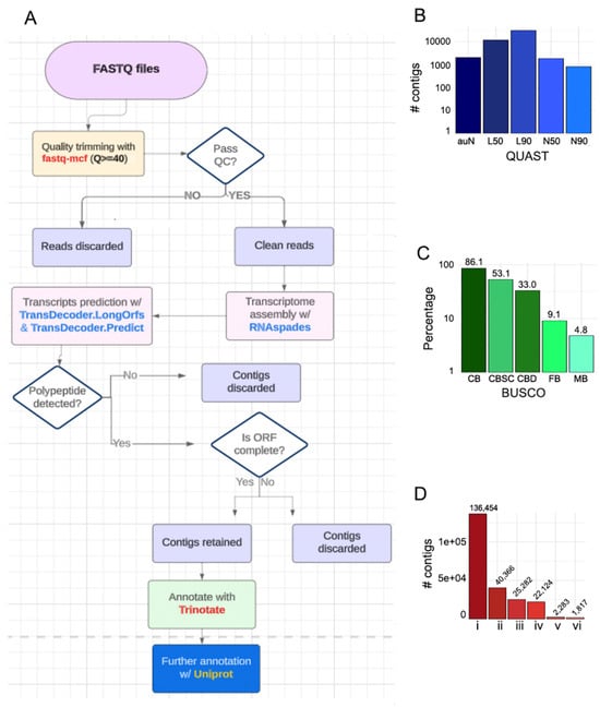 - Bushmanova, E.; Antipov, D.; Lapidus, A.; Prjibelski, A.D. rnaSPAdes: A de Novo Transcriptome Assembler and Its Application to RNA-Seq Data. Gigascience 2019, 8, giz100. [Google Scholar] [CrossRef]