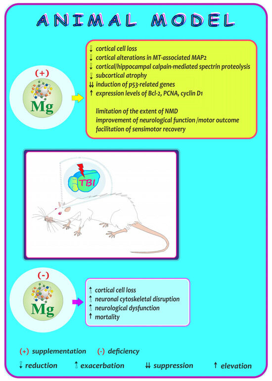 - Saatman, K.E.; Bareyre, F.M.; Grady, S.; McIntosh, T.K. Acute cytpsceletal alterations and cel death induced by experimental brain injury are attenuated by magnesium treatment and exacerbated by magnesium deficiency. J. Neuropathol. Exp. Neurol. 2001, 60, 183–194. [Google Scholar] [CrossRef]