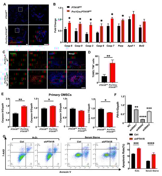 2.2. PTH1R-Ablation Promoted Apoptosis of Mesenchymal Cells Both In Vivo and In Vitro