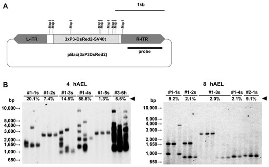 - Tamura, T.; Thibert, C.; Royer, C.; Kanda, T.; Eappen, A.; Kamba, M.; Kômoto, N.; Thomas, J.; Mauchamp, B.; Chavancy, G.; et al. Germline transformation of the silkworm Bombyx mori L. using a piggyBac transposon-derived vector. Nat. Biotechnol. 2000, 18, 81–84. [Google Scholar] [CrossRef]