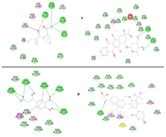 2.6. Molecular Docking for the Best Compounds Repurposing from the FDA Database
