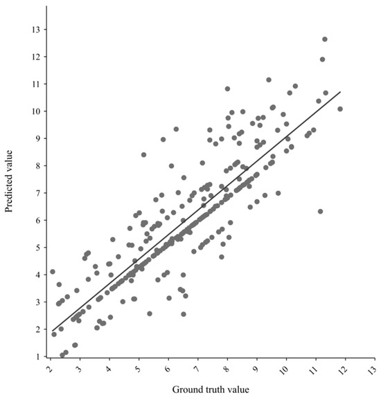 Figure 4 illustrates that for the 285 complexes in CASF2016, the proposed model’s predictions of binding affinity are generally in close agreement with the ground truth values. Most predicted values cluster around the trend line, indicating strong performance, while only a few exhibit significant deviations from the actual values.