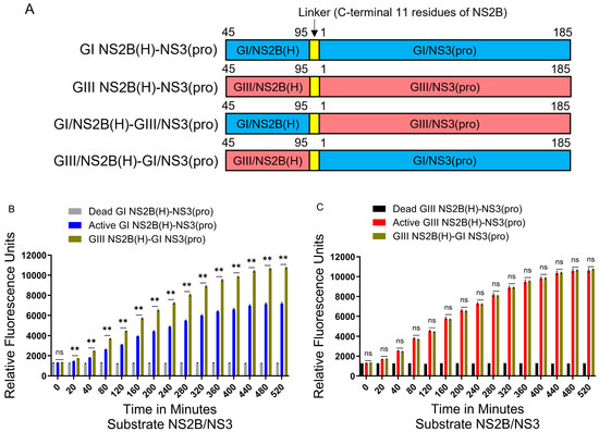 2.6. Hydrophilic Domain of NS2B Determines the Difference in NS2B(H)-NS3(pro) Protease Activities Between GI and GIII