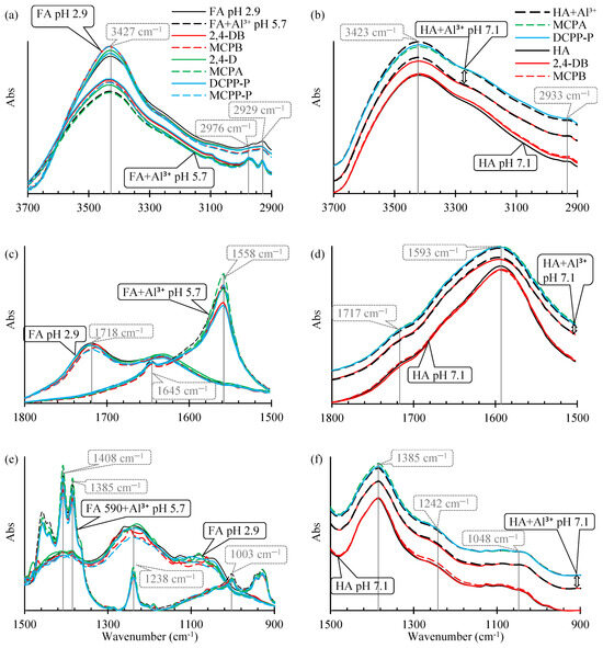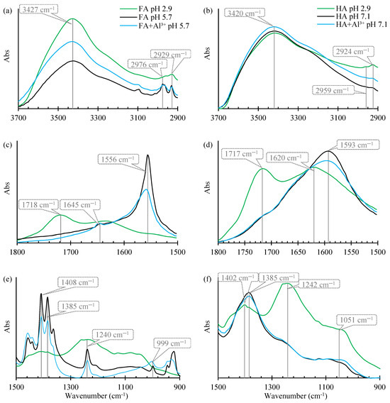 2.1.1. FTIR Spectra of Pure FAs and HAs, and After the Adsorption of Al3+ Species