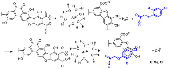 - Elkins, K.M.; Dickerson, M.A.; Traudt, E.M. Fluorescence characterization of the interaction Suwannee river fulvic acid with the herbicide dichlorprop (2-(2,4-dichlorophenoxy)propionic acid) in the absence and presence of aluminum or erbium. J. Inorg. Biochem. 2011, 105, 1469–1476. [Google Scholar] [CrossRef]