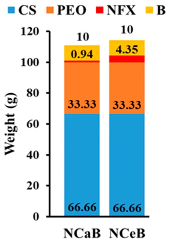 - Group 3 (NCeB): wound covered with NCeB nanofibers (high concentration norfloxacin, 4.35%)