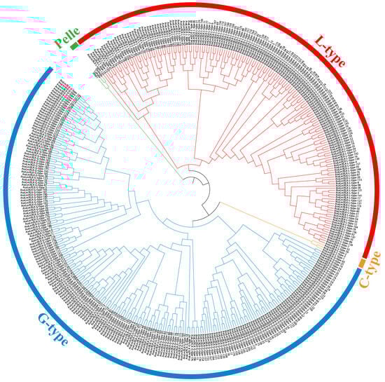 - Sun, Y.; Qiao, Z.; Muchero, W.; Chen, J. Lectin Receptor-Like Kinases: The Sensor and Mediator at the Plant Cell Surface. Front. Plant Sci. 2020, 11, 596301. [Google Scholar] [CrossRef] [PubMed]