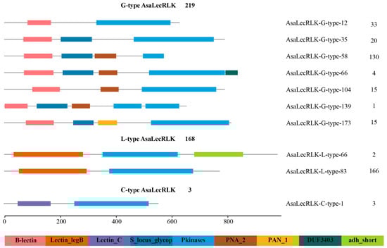 2.3. Conserved Domain, Conserved Motif and Gene Structure Analysis of AsaLecRLKs