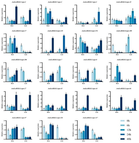 2.7. Gene Expression Analysis of AsaLecRLKs’ Response to Salt Stress Treatments