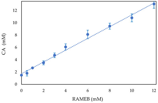 The CA:RAMEB molar ratio was calculated as follows (Equation (3))