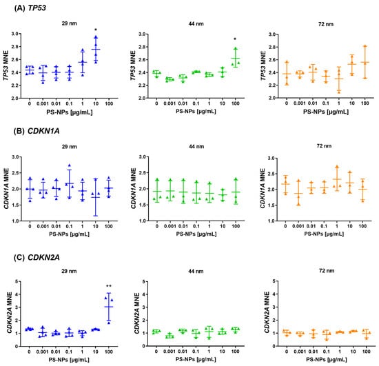 Malinowska, K.; Tarhonska, K.; Foksiński, M.; Sicińska, P.; Jabłońska, E.; Reszka, E.; Zarakowska, E.; Gackowski, D.; Górecka, K.; Balcerczyk, A.; et al. Impact of Short-Term Exposure to Non-Functionalized Polystyrene Nanoparticles on DNA Methylation and Gene Expression in Human Peripheral Blood Mononuclear Cells. Int. J. Mol. Sci. 2024, 25, 12786. https://doi.org/10.3390/ijms252312786