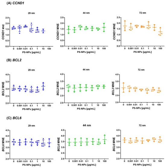 - Malinowska, K.; Sicińska, P.; Michałowicz, J.; Bukowska, B. The Effects of Non-Functionalized Polystyrene Nanoparticles of Different Diameters on the Induction of Apoptosis and mTOR Level in Human Peripheral Blood Mononuclear Cells. Chemosphere 2023, 335, 139137. [Google Scholar] [CrossRef] [PubMed]
