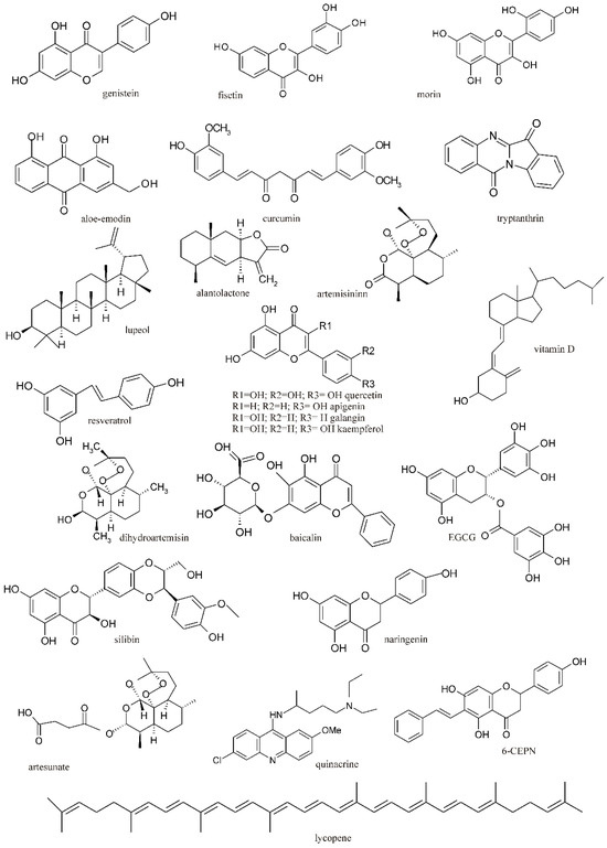The chemical structures of natural compounds targeting WNT/β-catenin signaling in various cancers.