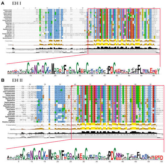 Multiple sequence alignment of EH I (A) and EH II (B).