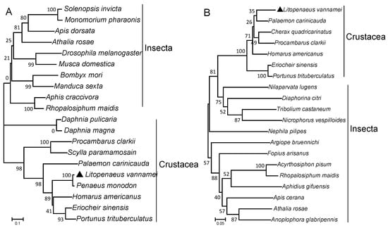The Pacific white shrimp Litopenaeus vannamei is a globally widely farmed and highly productive invertebrate species [1,2]. The significant advantages of L. vannamei, such as its high production per unit area, excellent adaptability, high meat yield, and efficient feed conversion rate, make it one of the most ideal aquaculture species worldwide [3]. Its annual production is over 5 million tons, with an output value of 50–60 billion USD [4]. Given its high production and output value, improving current aquaculture techniques for L. vannamei will provide substantial economic benefits. Understanding the physiological regulatory mechanisms is fundamental to advancing aquaculture technology. However, many physiological regulatory mechanisms closely related to the aquaculture of L. vannamei, such as molting regulation, remain unclear.