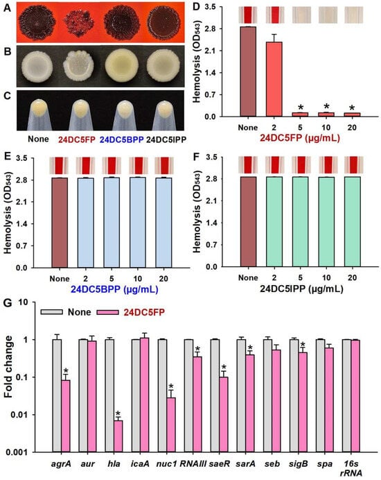 2.4. Impact of 24DC5FP on Gene Expression in S. aureus