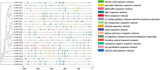 cis-acting elements in the promoters of VcNF-YAs. Different colored boxes represent different cis-acting elements.