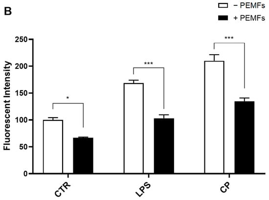 Merighi, S.; Nigro, M.; Travagli, A.; Fernandez, M.; Vincenzi, F.; Varani, K.; Pasquini, S.; Borea, P.A.; Salati, S.; Cadossi, R.; et al. Effect of Low-Frequency, Low-Energy Pulsed Electromagnetic Fields in Neuronal and Microglial Cells Injured with Amyloid-Beta. Int. J. Mol. Sci. 2024, 25, 12847. https://doi.org/10.3390/ijms252312847