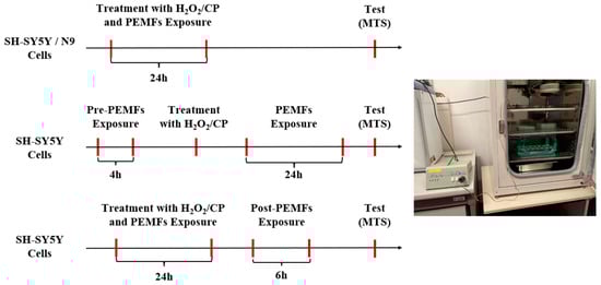 - Vincenzi, F.; Ravani, A.; Pasquini, S.; Merighi, S.; Gessi, S.; Setti, S.; Cadossi, R.; Borea, P.A.; Varani, K. Pulsed Electromagnetic Field Exposure Reduces Hypoxia and Inflammation Damage in Neuron-Like and Microglial Cells. J. Cell. Physiol. 2017, 232, 1200–1208. [Google Scholar] [CrossRef]