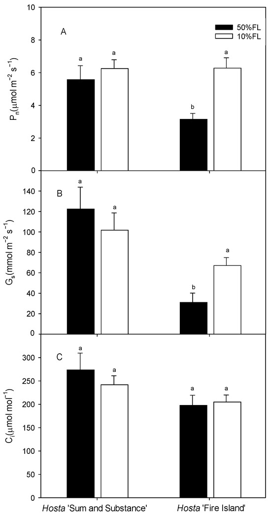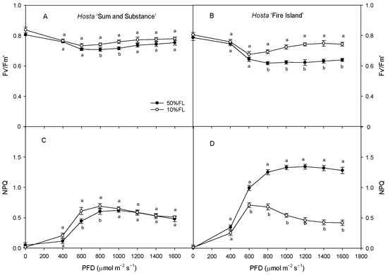 2.4. Effects of Growth Irradiance on Photosynthetic Rate and Non-Photochemical Quenching in Hosta ‘Fire Island’ and ‘Sum and Substance’