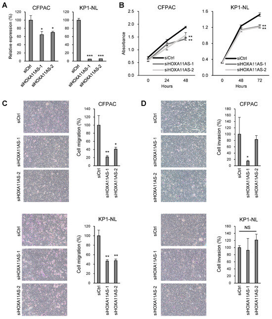 2.3. HOXA11-AS Promotes Proliferation and Migration in PDAC Cells