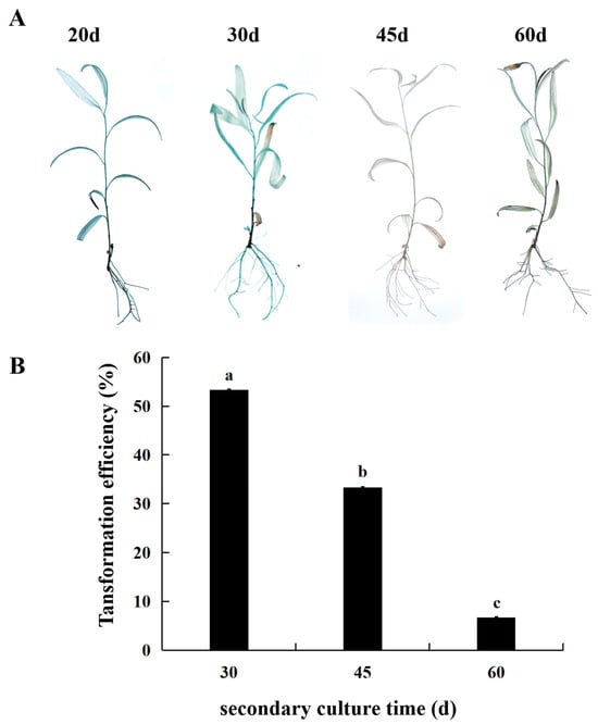 2.1. Effect of Secondary Culture Time on Transient Transformation Efficiency of S. psammophila